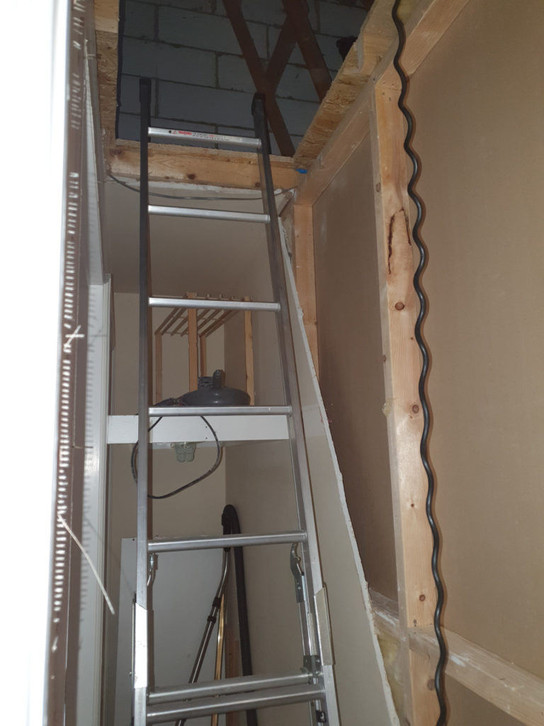 Intresting project done in Kings Lynn area. Prior to our work there was restricted access to the loft through the standard hatch. We had to find the way to fit the stairs, and the only way to cut a bit in the wall.