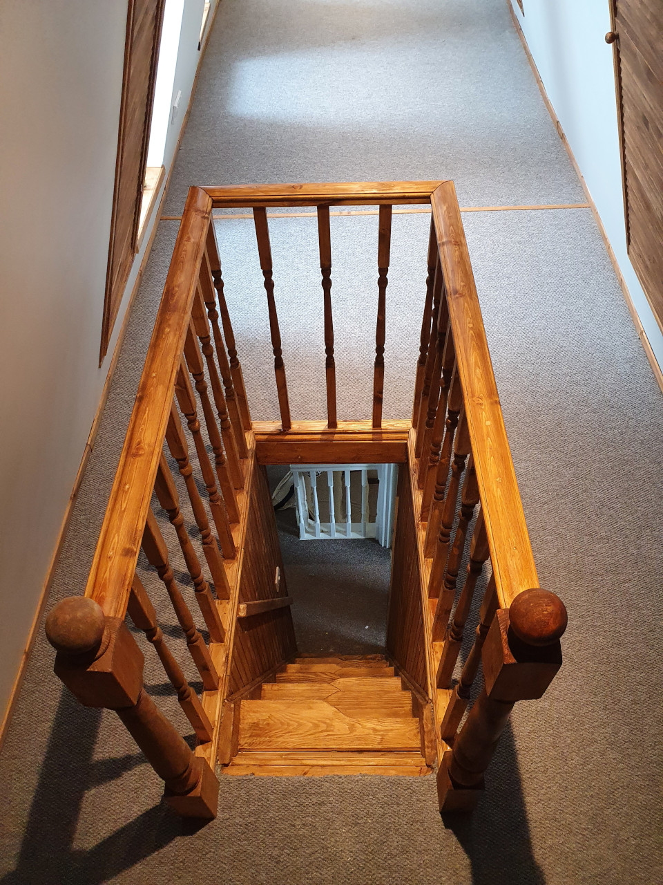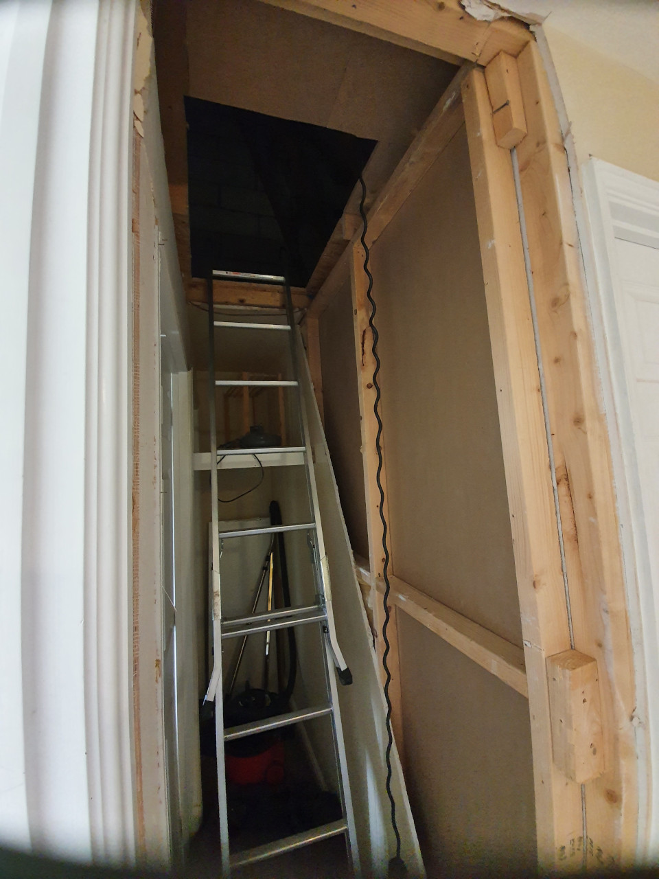 Intresting project done in Kings Lynn area. Prior to our work there was restricted access to the loft through the standard hatch. We had to find the way to fit the stairs, and the only way to cut a bit in the wall.