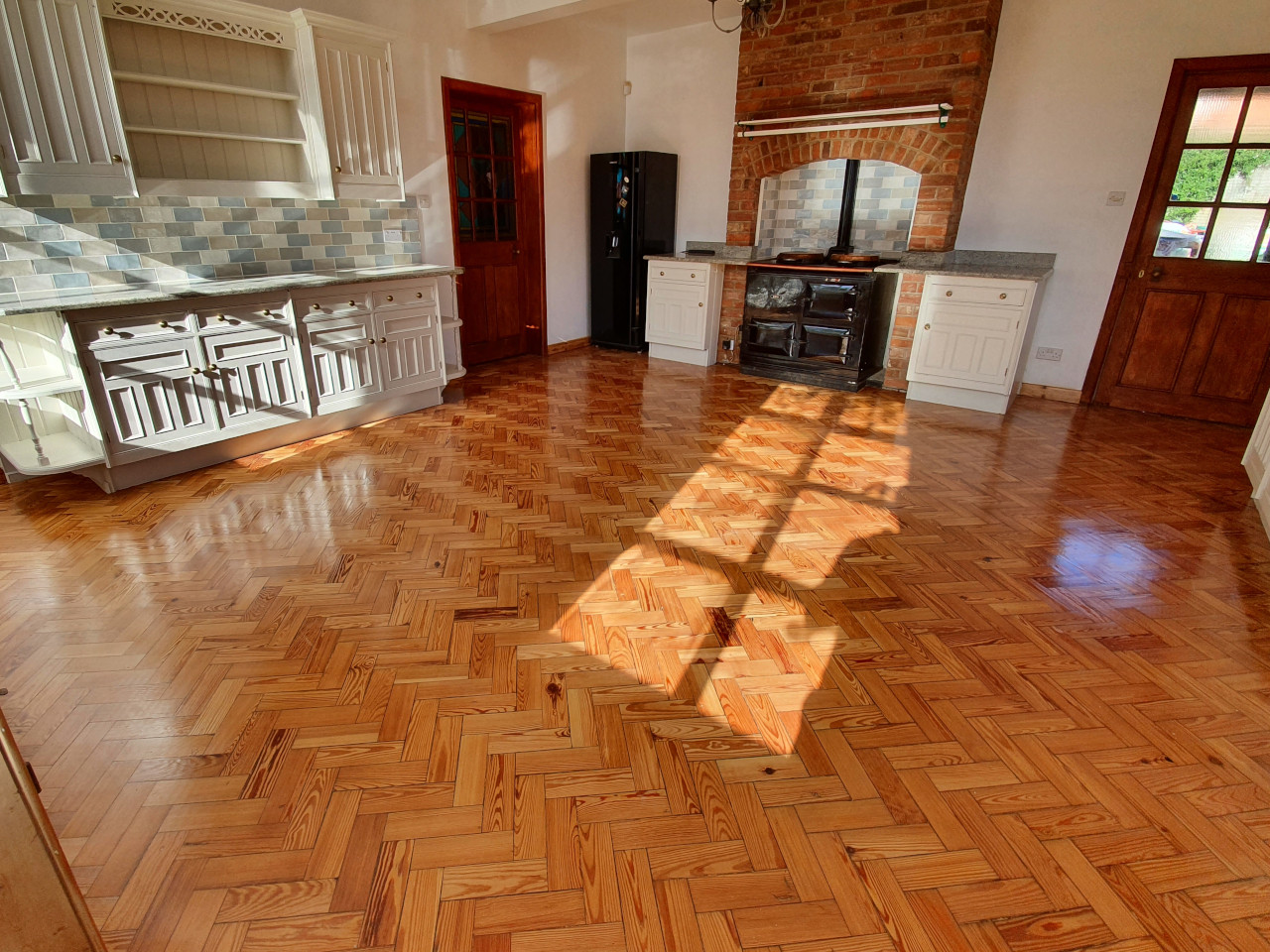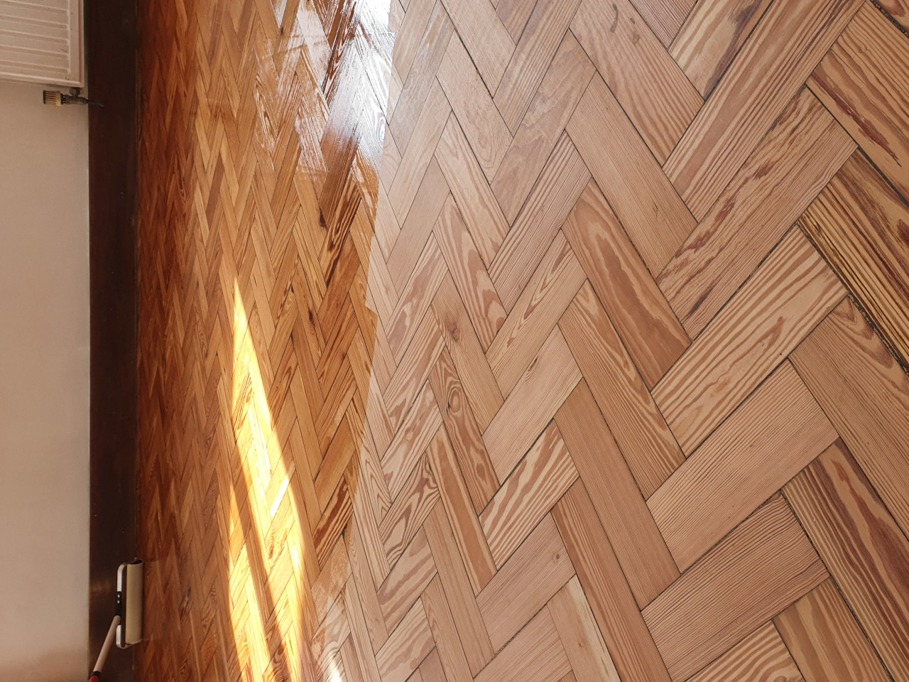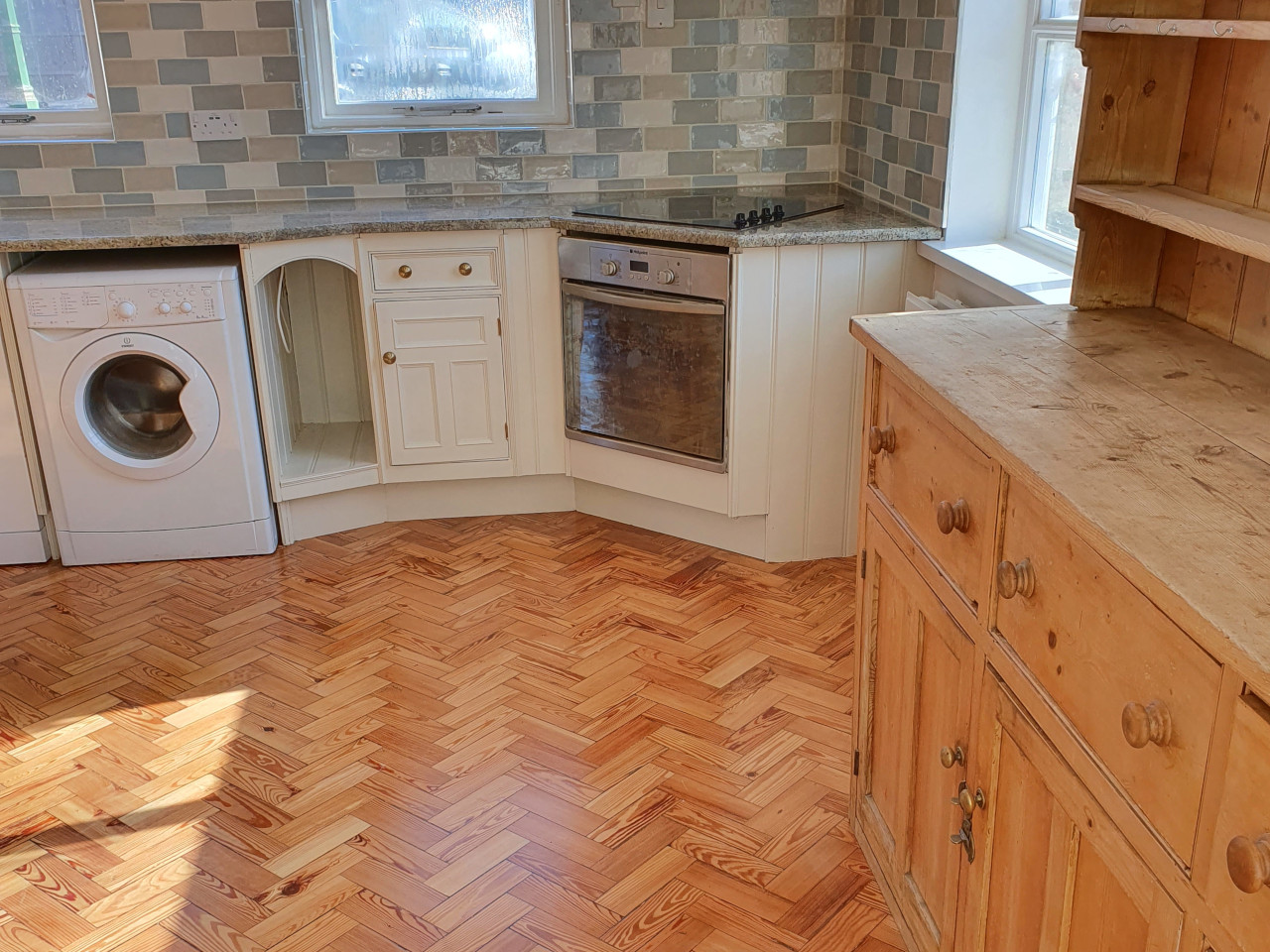 Fantastic opportunity to get kitchen renewed in style. Work included painting all kitchen unities, sanding down floor, doors and window frames. Floor has been treated with top brand filler and varnish to give it a brand new look. Doors has been varnished with teak shade and windows painted. Tiles has been changed to new ones and also kitchen sink. Great result.