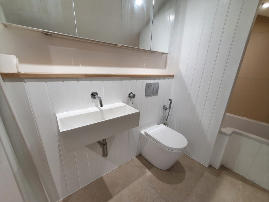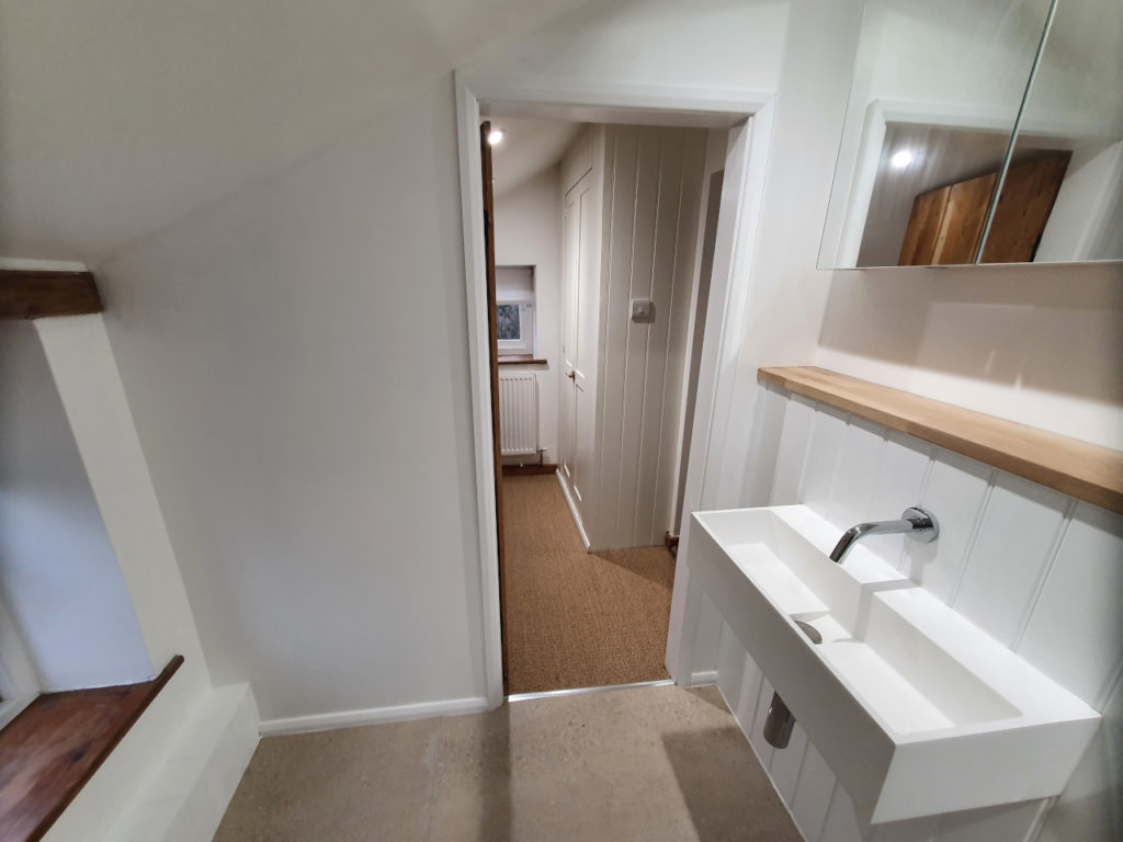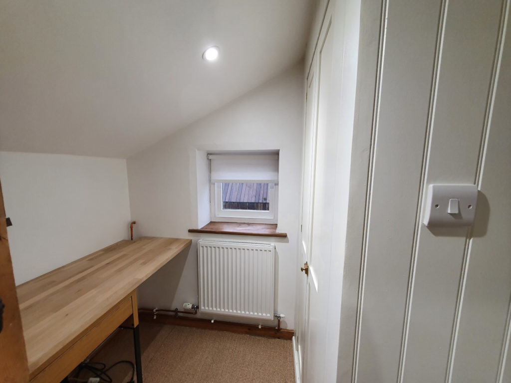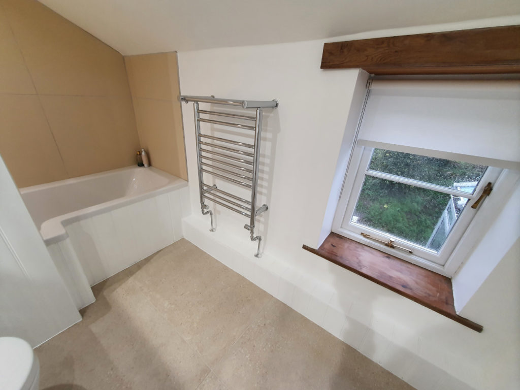 Great and challanging project done in Fakenham area. We changed large, not too pratical bathroom into stylish and modern bathroom and little home office room. The whole job required quite a lot planning, bath instead of having standard panel has been fully tiled. Integrated shower system installed. Internal wall build in to separte rooms, wardrobe build in to cover unwanted parts of the wall, all finished with wall panels.