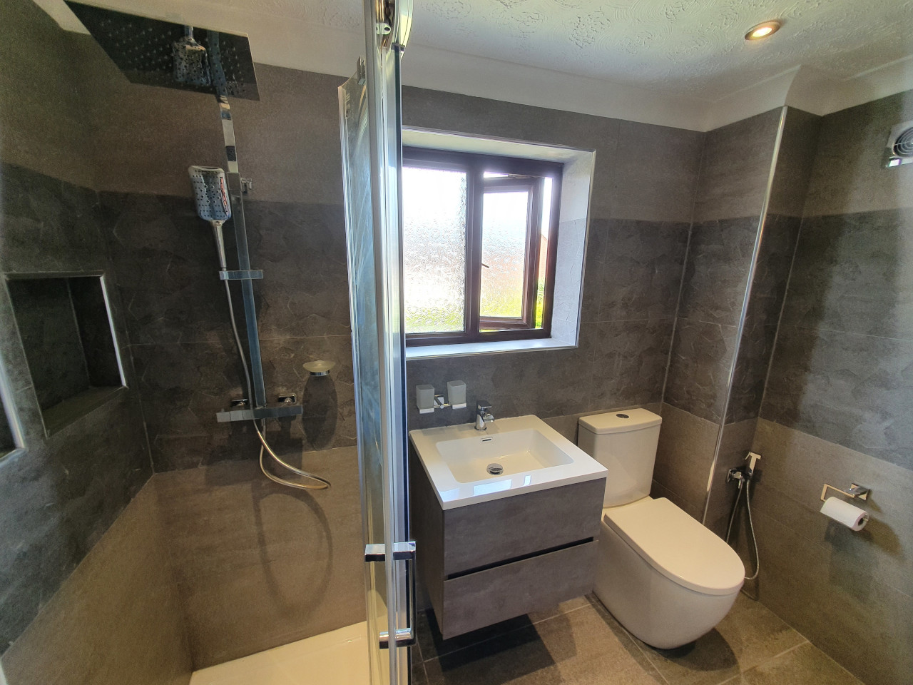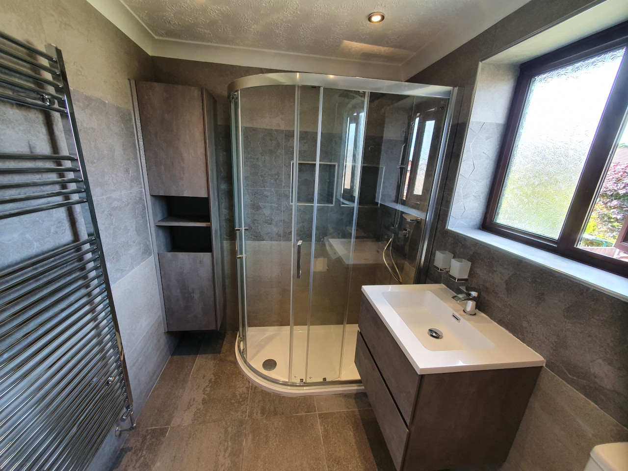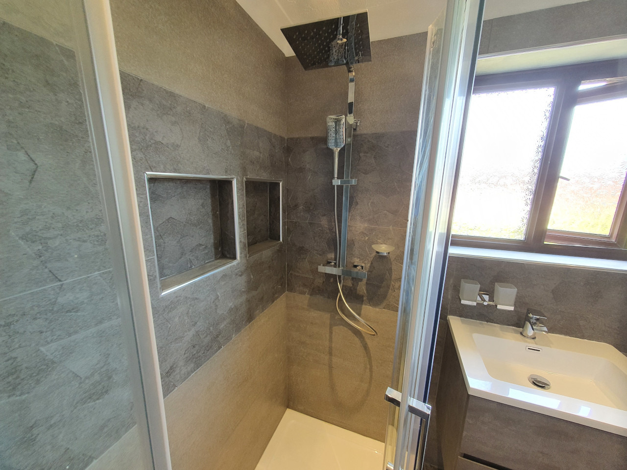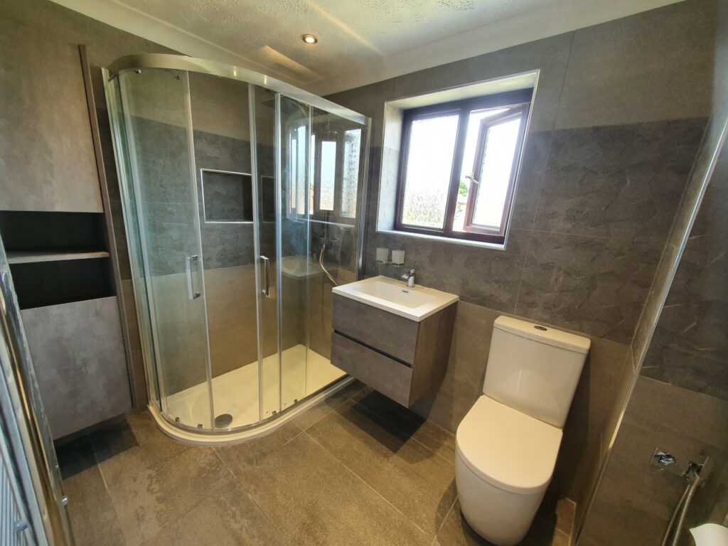 greg 17 Jun 2022 0 Comments Replacing oversized shower tray with modern shape and enclosure, shelvs made in the walls, large tile format and really nice sanitary ware to finish off. Before After