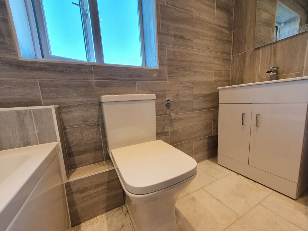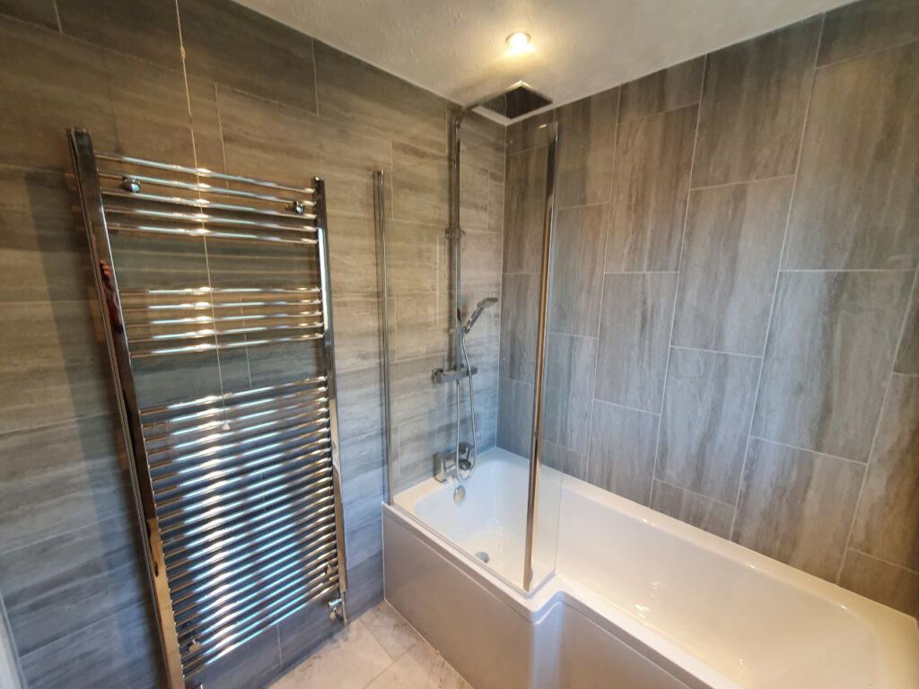 Bathroom finished in King’s Lynn. Old room had shower which was out of use and leaking everywhere and bath, we replaced it with modern solution to have both. Change of layout to make more room.