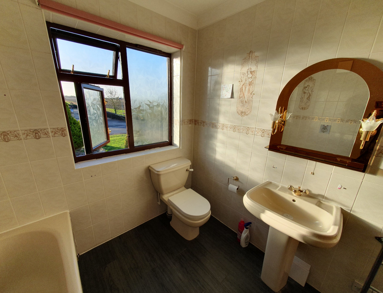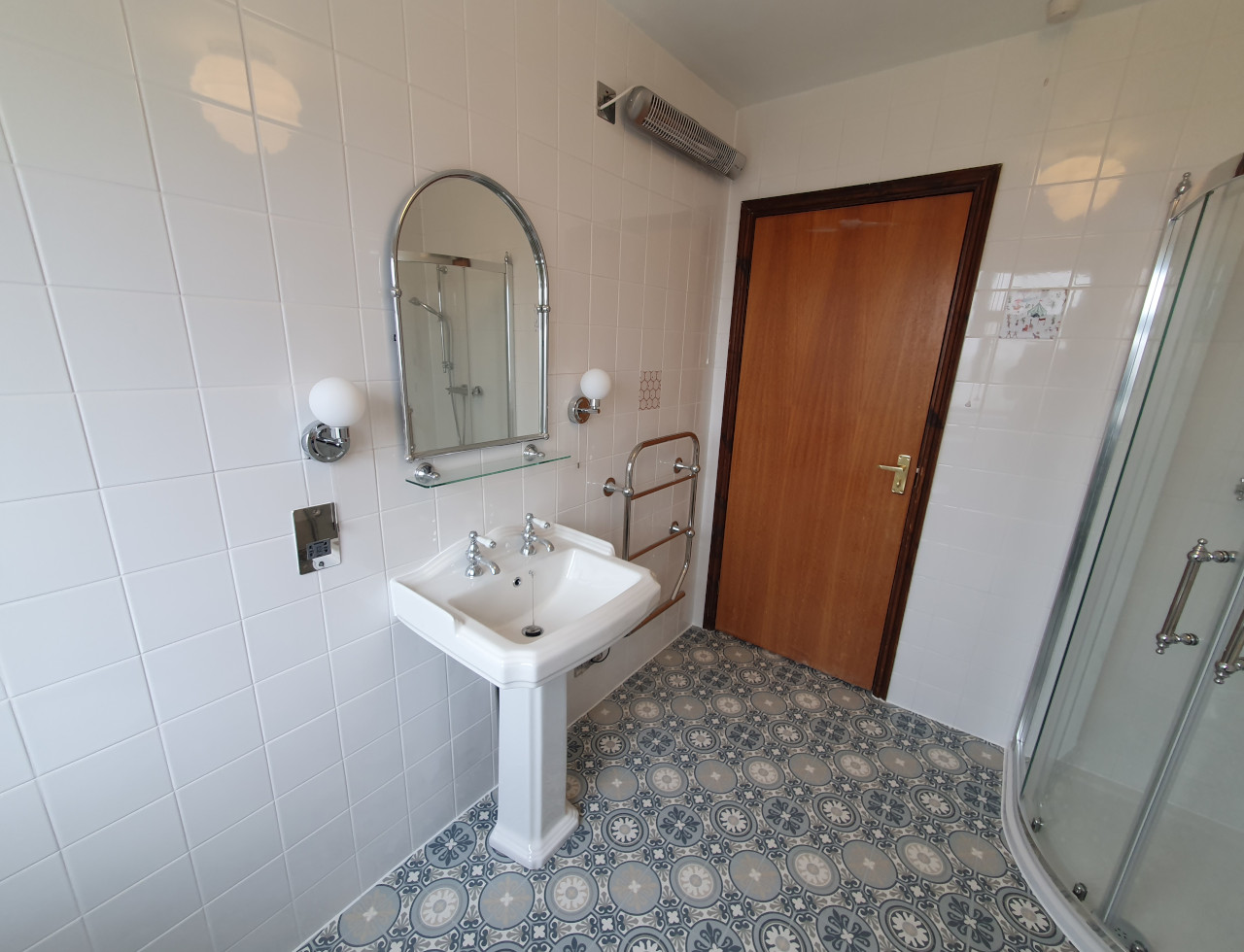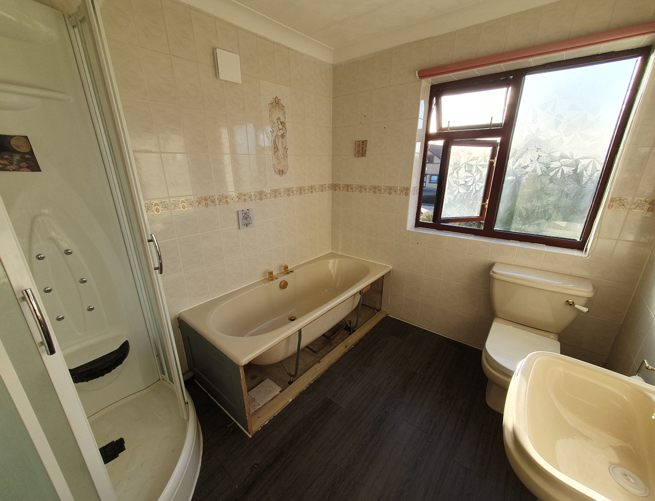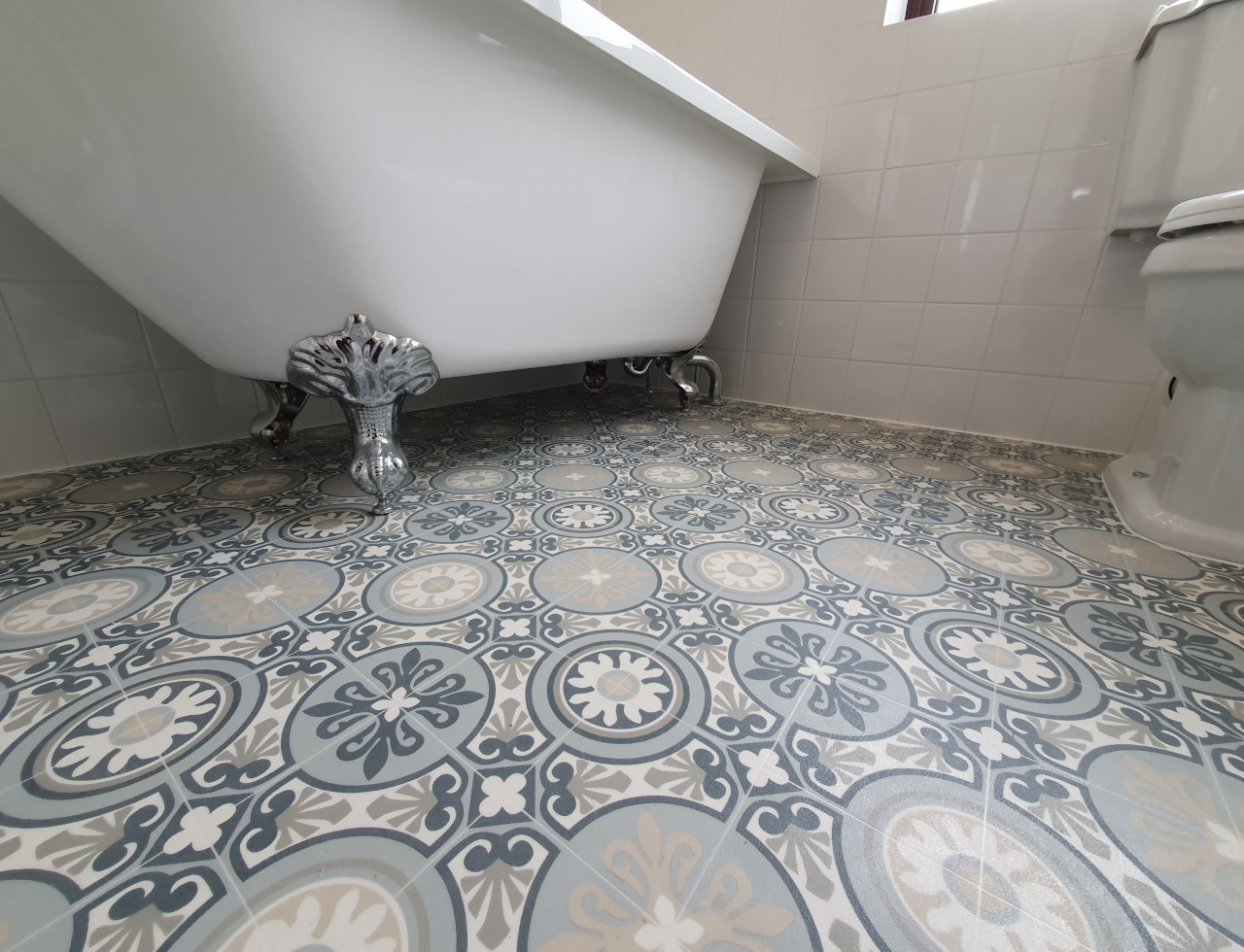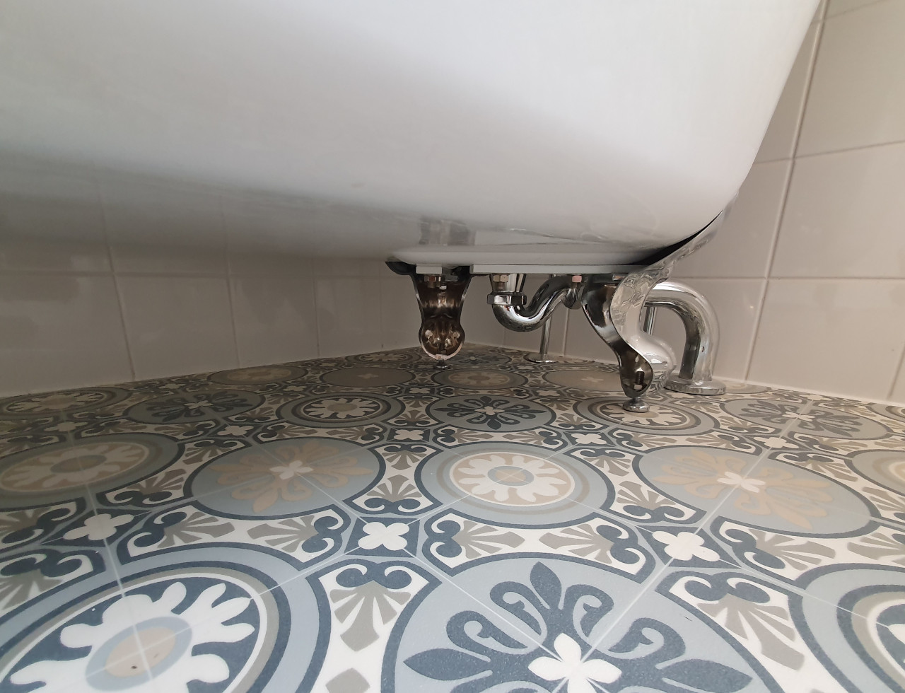 What a wonderful project completed in Parson Drove near Wisbech. Nearly 30 years old bathroom renovated into modern one with style. Work included leveling floor, smoothing ceiling out, replacing soil pipes, tiling and installation. Main feature is beautiful free standing corner bath with chrome legs.