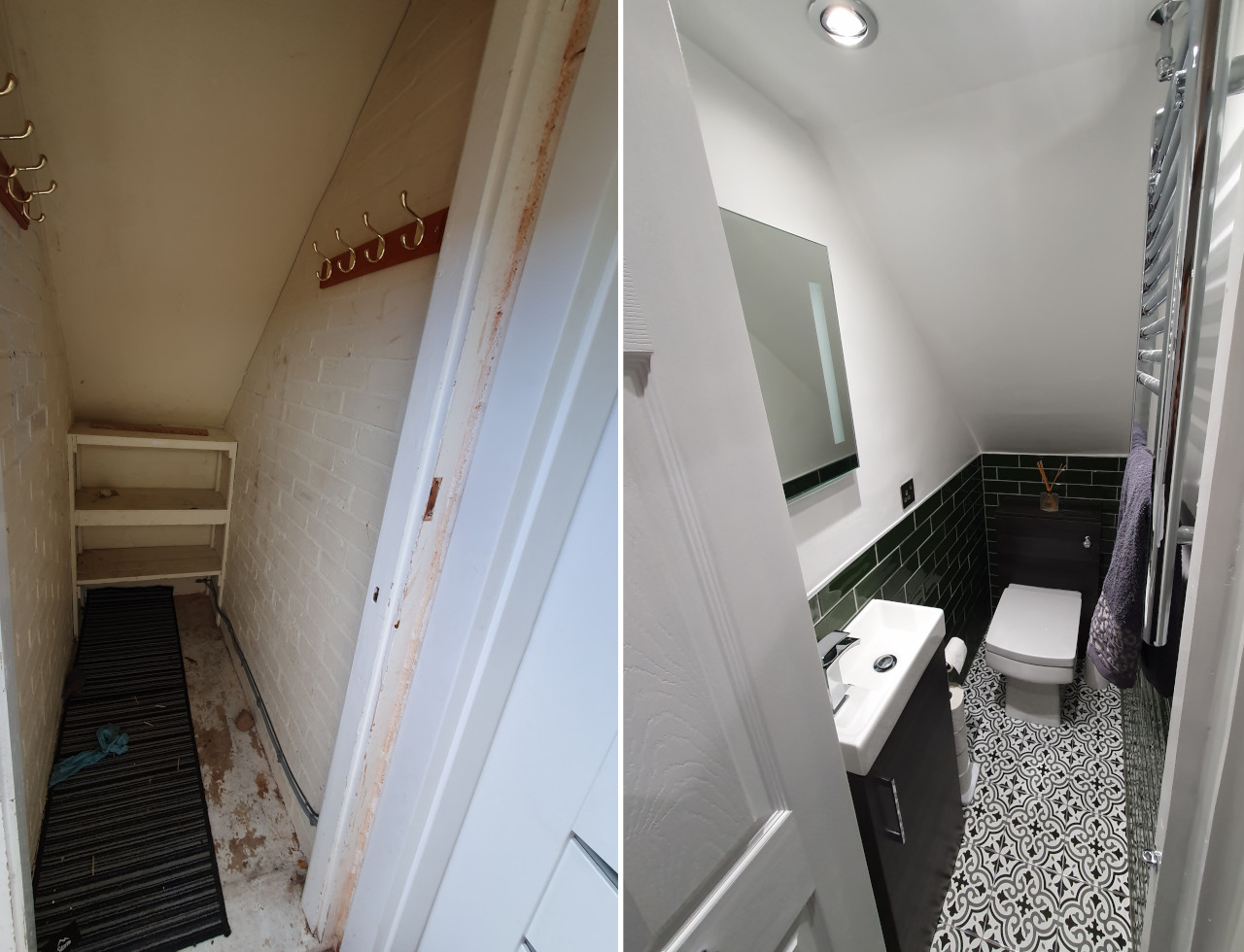 greg 05 Mar 2023 0 Comments Small space under stairs? No problem. Recent tiny unused space adaptation into downstairs toilet in King’s Lynn. Work included running new soil pipe outside, plastering the whole room, tiling and sanitary ware installation. Before and after