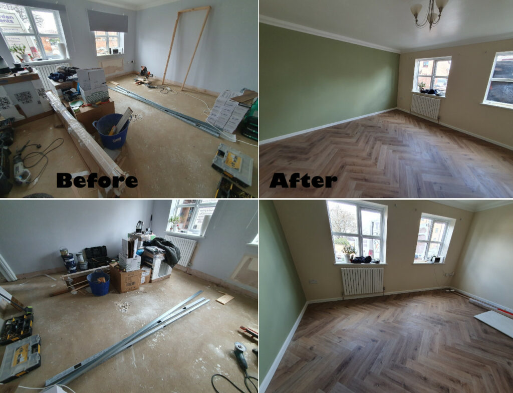 greg 21 Apr 2023 0 Comments Big transformation done in Sutton Bridge. Work included removing part of the wall in the kitchen and installing longer lintel, laying flooring in herringbone pattern and whole new kitchen. Before After