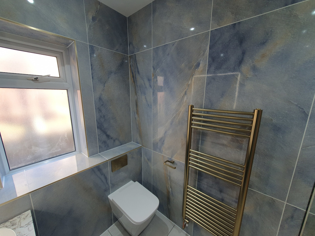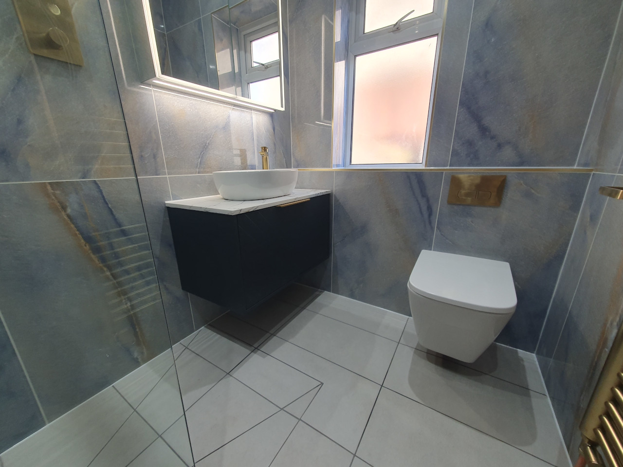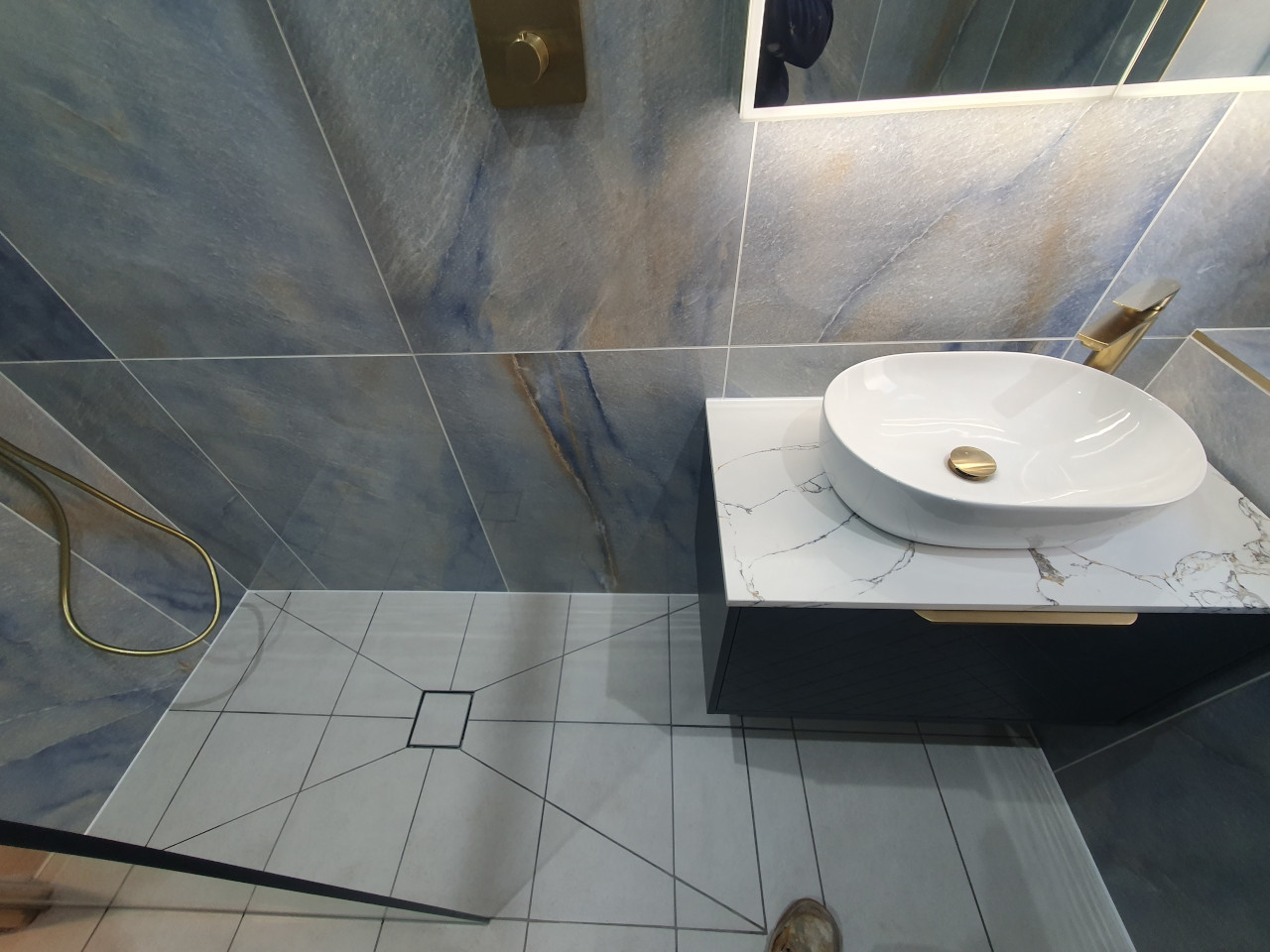greg 13 Jan 2025 0 Comments Massive project done in Hunstanton over 3 weeks. Work included underfloor heating, envelope shaped tiled shower floor, 1200x600mm wall tiles and finished with brushed brass accessories. Before After