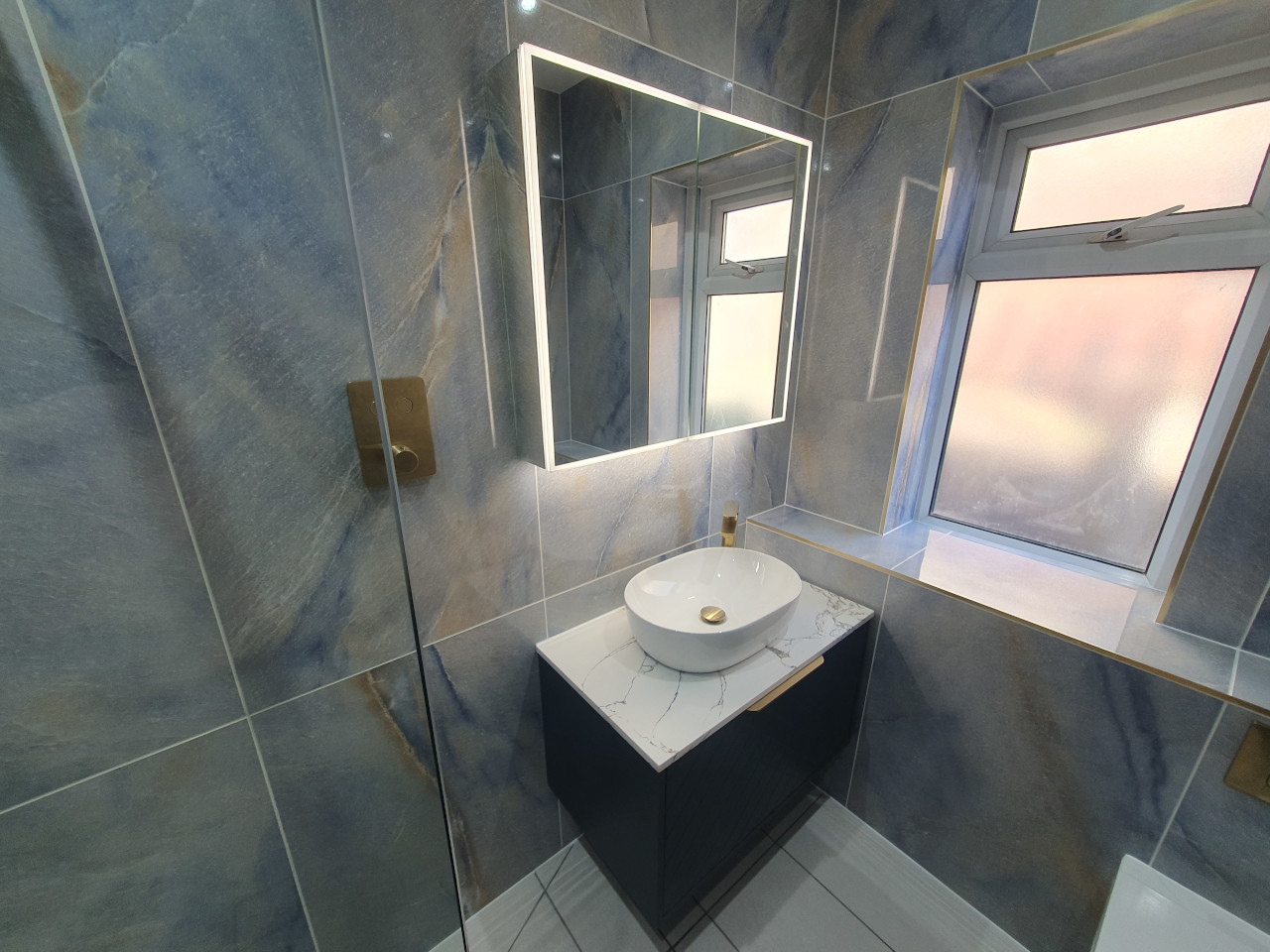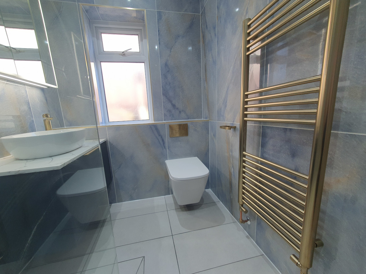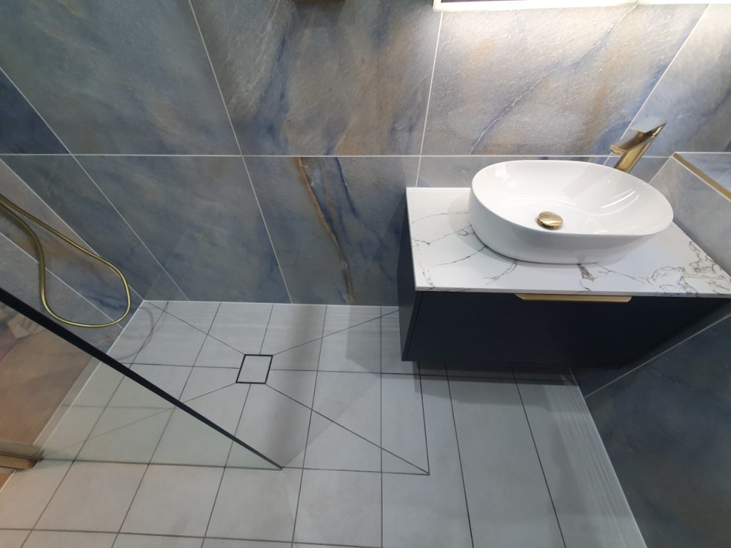 greg 13 Jan 2025 0 Comments Massive project done in Hunstanton over 3 weeks. Work included underfloor heating, envelope shaped tiled shower floor, 1200x600mm wall tiles and finished with brushed brass accessories. Before After